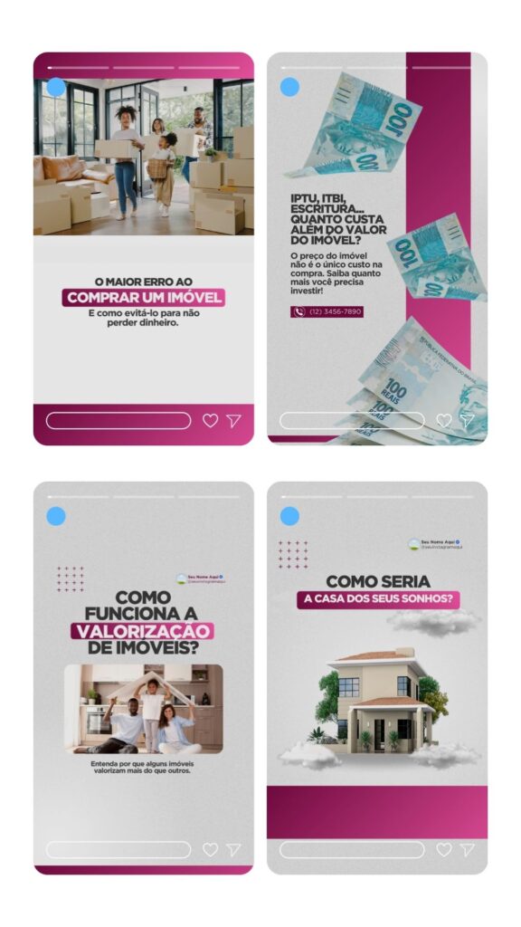 São mais de 55 templates para posts no instagram que transmitem toda a elegância e funcionalidade do seu trabalho. Basta editar e postar, sem complicação!
