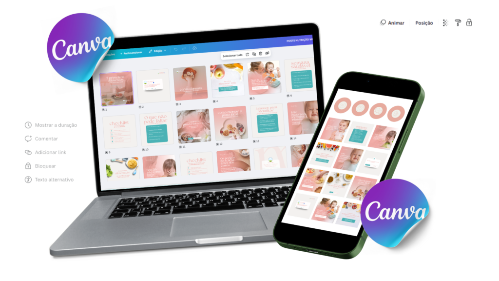 Conheça o material prático e 100% editável no Canva que vai te ajudar a construir um perfil de Instagram atraente e estratégico com poucos CLIQUES!